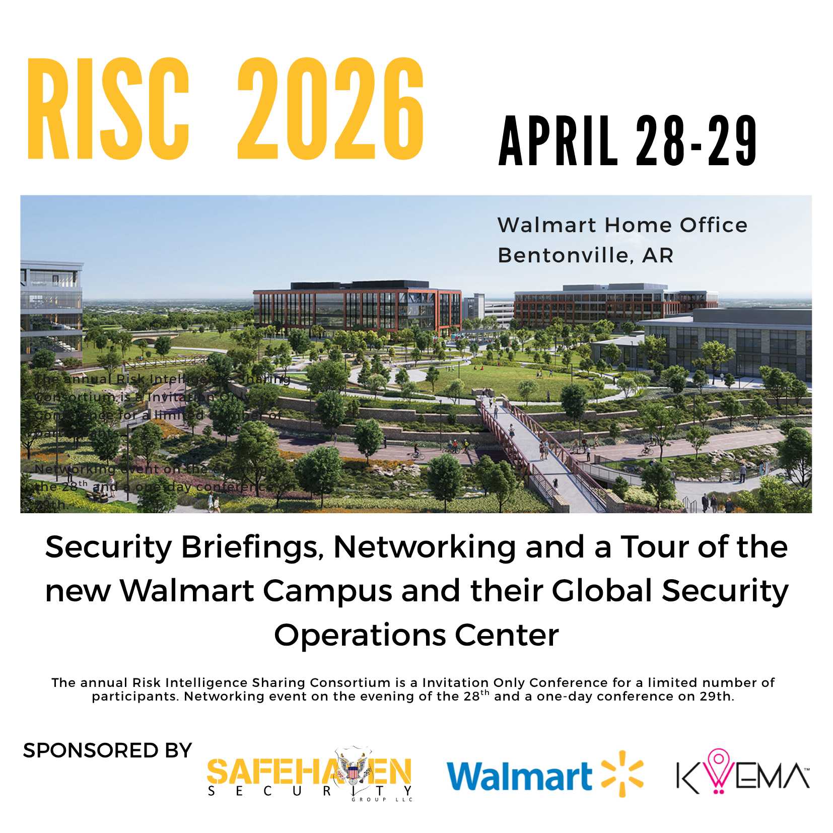 The 2026 Conference will be held at the Walmart Home Office in Bentonville. This event is an invitation only conference with a limited number of participants. Security directors and top law enforcement officers join together to participate in briefings about violence and security matters facing our world today. If you would like to request an invite to the event, please email marketing@safehavensecuritygroup.com.